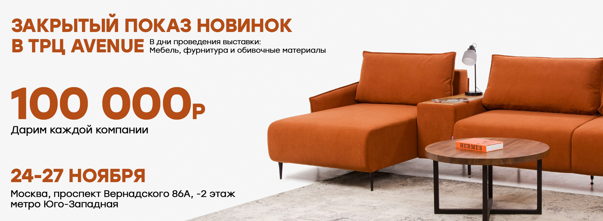 Уважаемые коллеги, приглашаем вас посетить наш закрытый показ новинок в ТРЦ AVENUE, в дни проведения выставки "Мебель, фурнитура и обивочные материалы" 24-27 ноября в городе Москва |